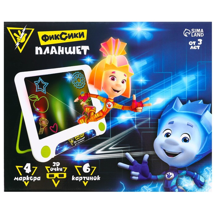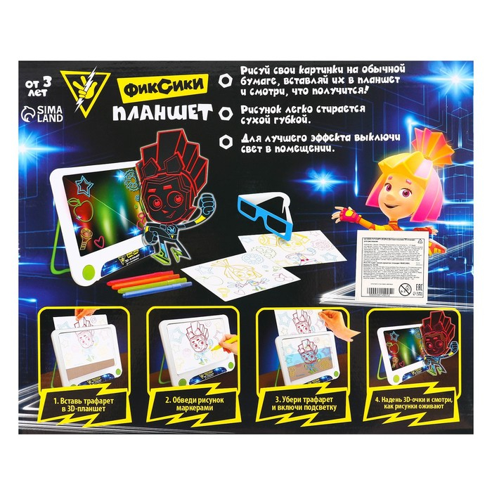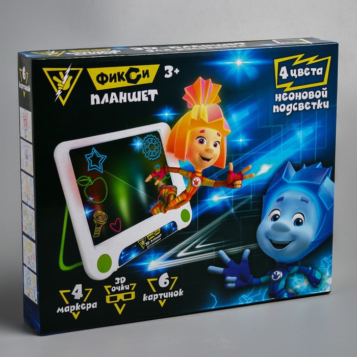 3D-планшет для рисования «Фиксики: Фикси планшет», неоновые маркеры, световые эффекты, с карточками