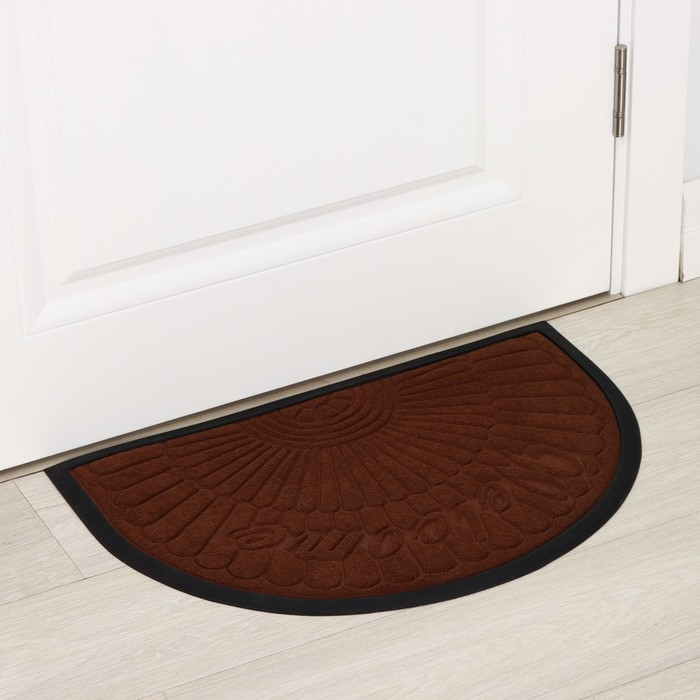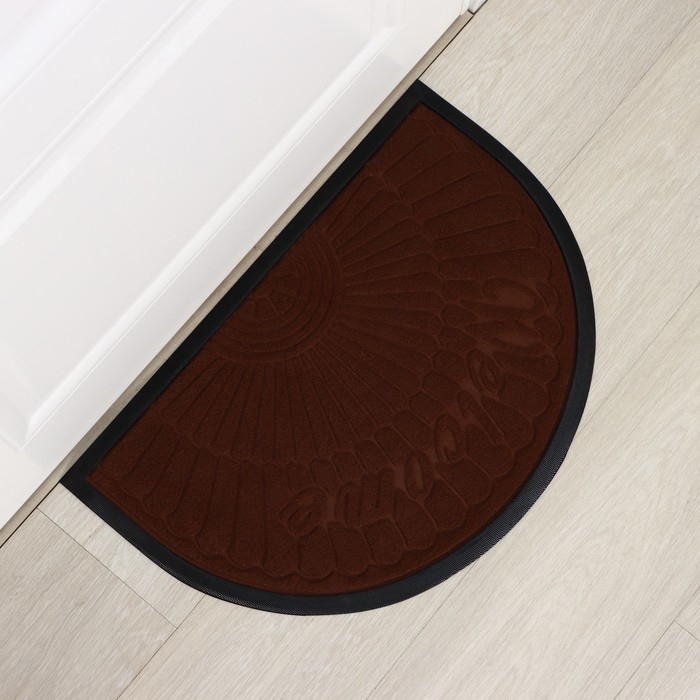 Коврик придверный полукруглый Доляна Welcome арки, 40×60 см, с окантовкой, цвет коричневый