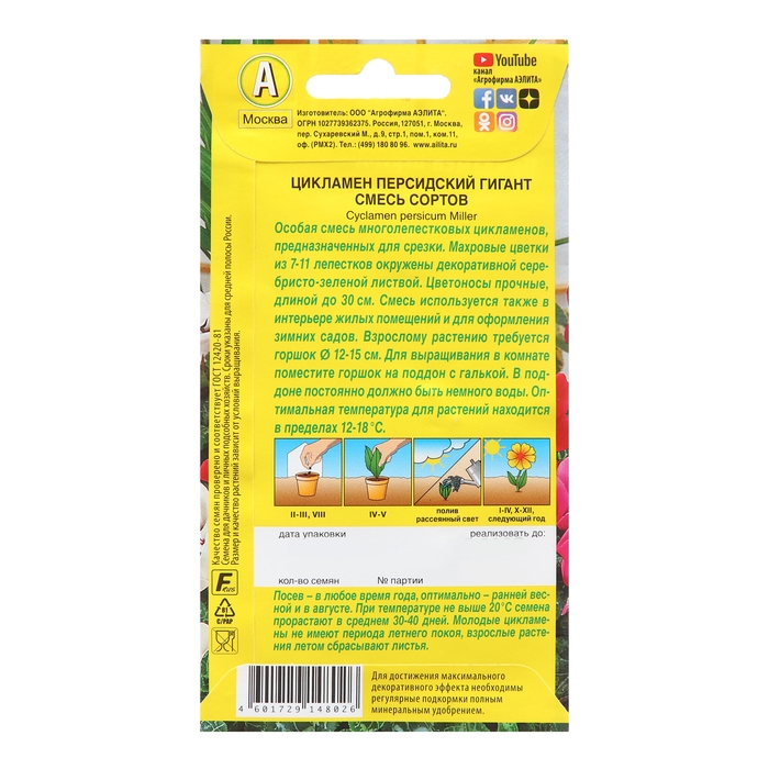 Цикламен персидский Гигант, смесь сортов ---3 шт. Мн