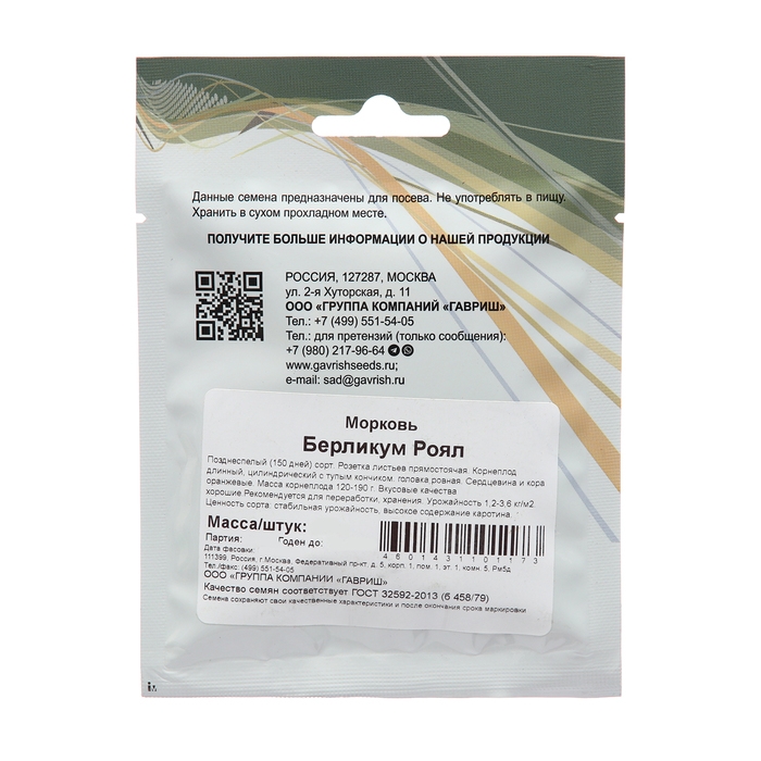 Позднеспелый (150 дней от всходов до технической спелости) сорт. Посев семян в грунт производится в конце апреля – начале мая на глубину 1 см, расстояние между рядками 15 см. Подросшие всходы прореживают, оставляя между растениями по 5-7 см. Розетка листьев прямостоячая. Корнеплод длинный, цилиндрический с тупым кончиком (сортотип Берликум), головка ровная. Сердцевина и кора оранжевые. Масса корнеплода 120-190 г. Вкусовые качества хорошие. Сорт характеризуется стабильной урожайностью. Рекомендуется для переработки, хранения. Урожайность 1,2-3,6 кг/м2. Ценность сорта: стабильная урожайность, высокое содержание каротина.