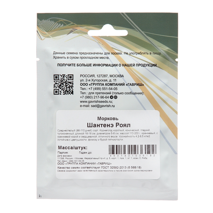 Среднеспелый (86-110 дней от всходов до технической спелости) сорт. Выращивают посевом в открытый грунт на глубину 1 см. Лист длинный, зеленый, с мелкой рассеченностью. Корнеплод короткий, конический со слегка заостренным кончиком (сортотип Шантенэ), головка слегка выпуклая до ровной. Сердцевина и кора оранжевые. Масса 110-200 г Сорт характеризуется повышенным содержанием каротина и сахара, выравненностью корнеплодов. Рекомендуется для использования в свежем виде и длительного зимнего хранения. Урожайность 2,0-4,1 кг/м2.