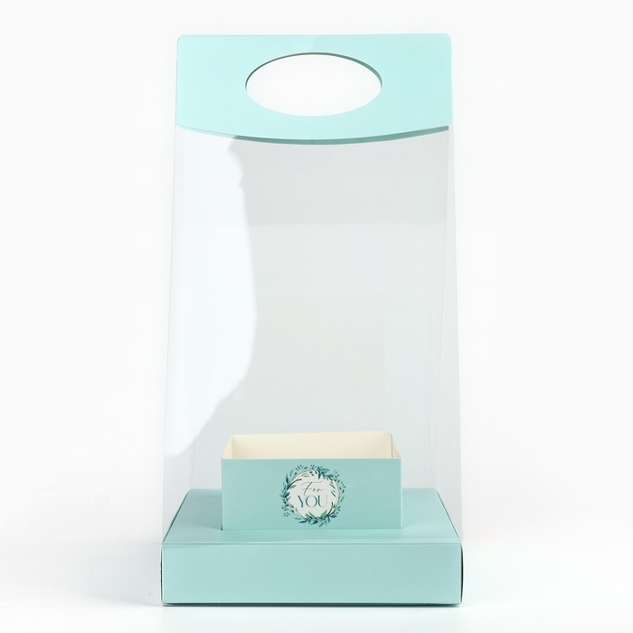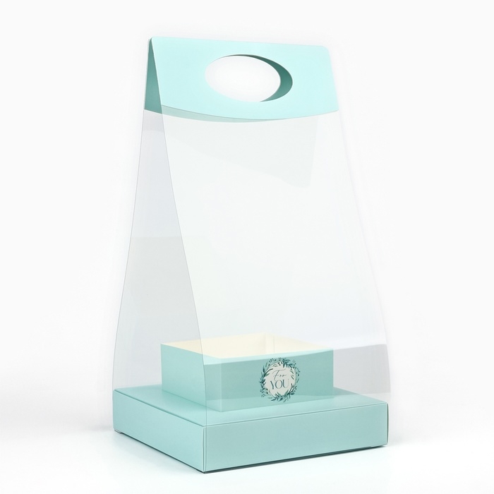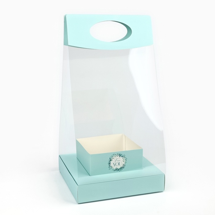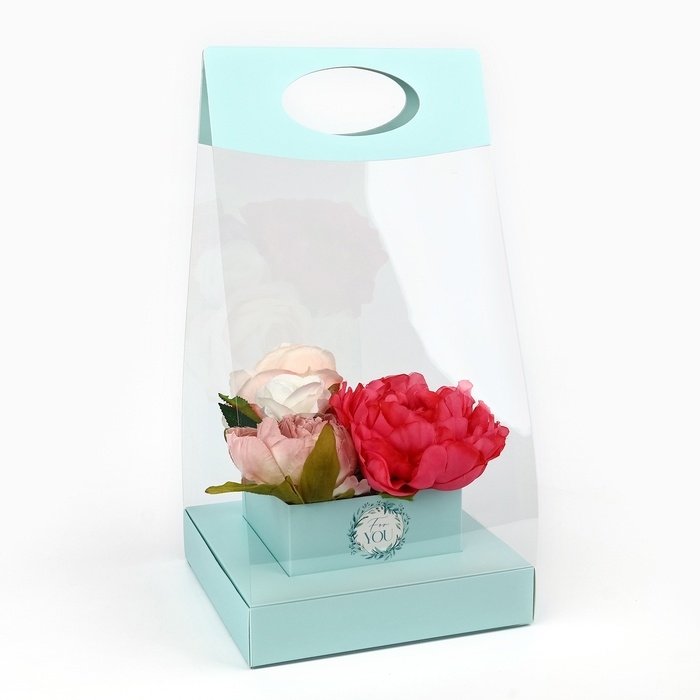 Коробка подарочная складная переноска для цветов, упаковка, «Бирюза», 20 x 20 x 4 см