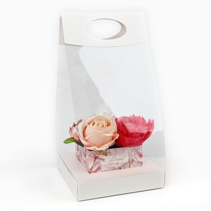 Коробка подарочная складная переноска для цветов, упаковка, «Нежность», 20 x 20 x 4 см