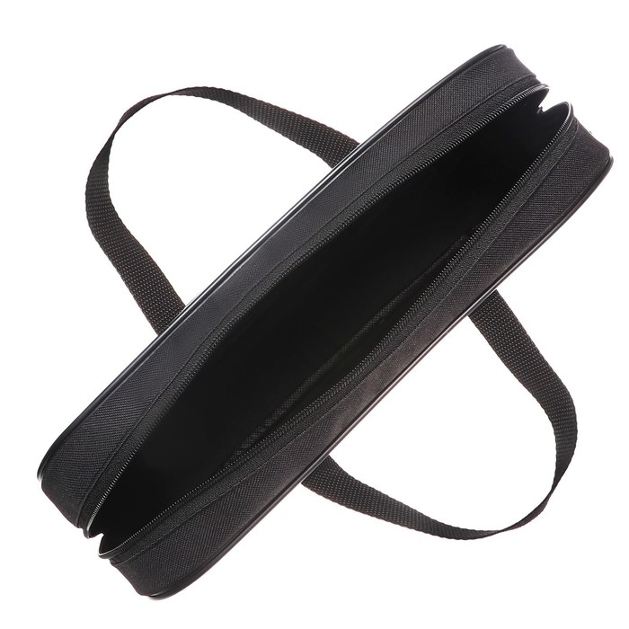Папка текстильная на молнии с ручками, формат A4+. Размер 270 х 70 х 350 мм. Материал: износо-морозостойкий водоотталкивающий 100% полиэстер. Предназначена для транспортировки учебных принадлежностей, документов и различных аксессуаров. Имеет одно большое отделение с расширением и карманом внутри, застежка на молнии с мягким ходом. Для комфортной переноски ручки папки выполнены из прочной стропы