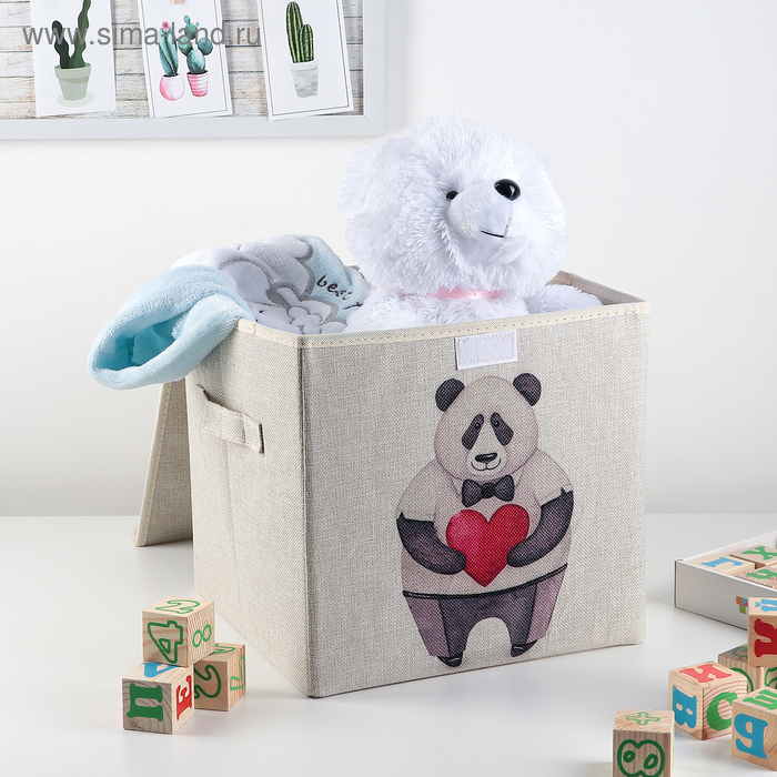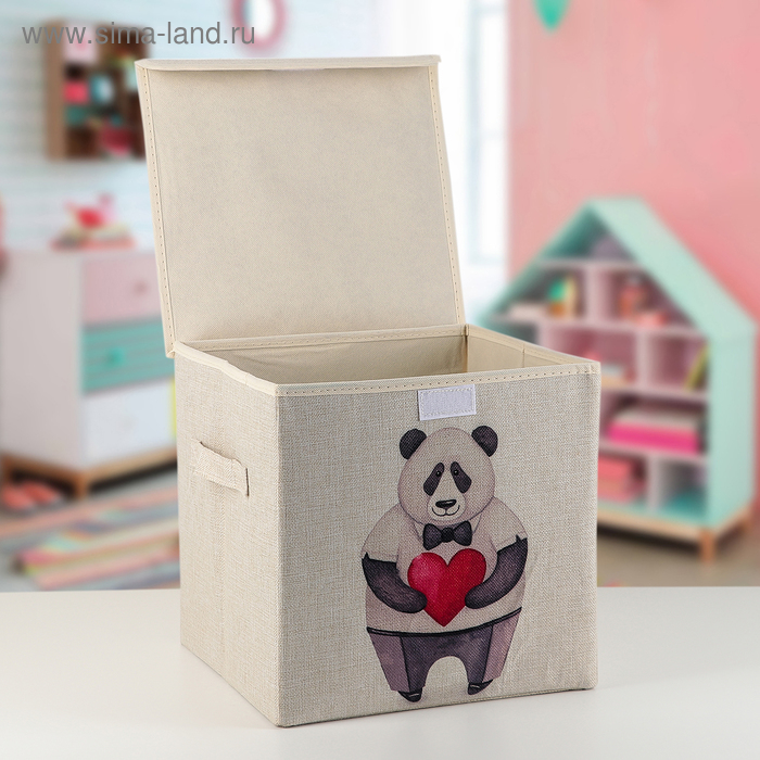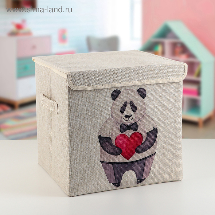 Короб стеллажный для хранения с крышкой «Влюблённая панда», 30×30×28,5 см