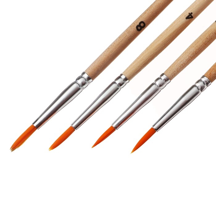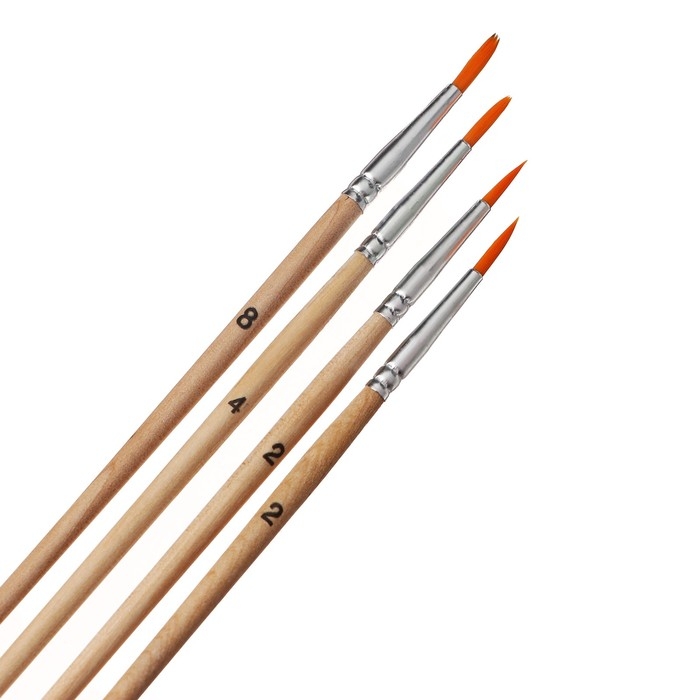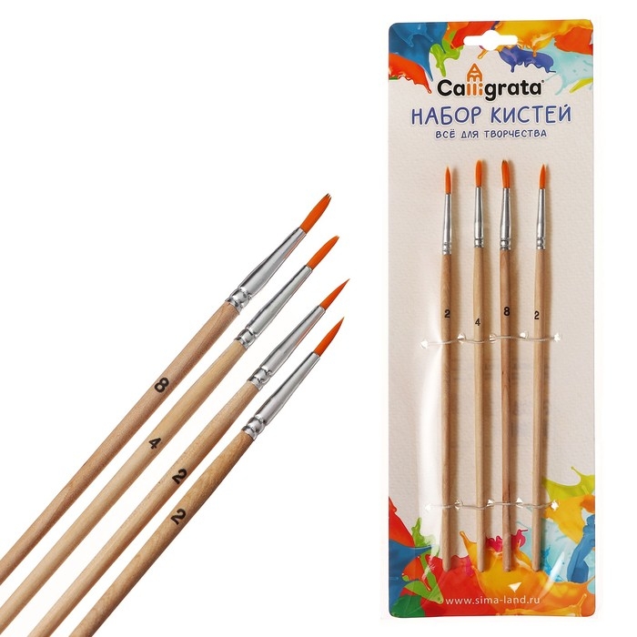 Набор кистей синтетика 4 штуки, №2 , круглые, блистер , деревянная ручка