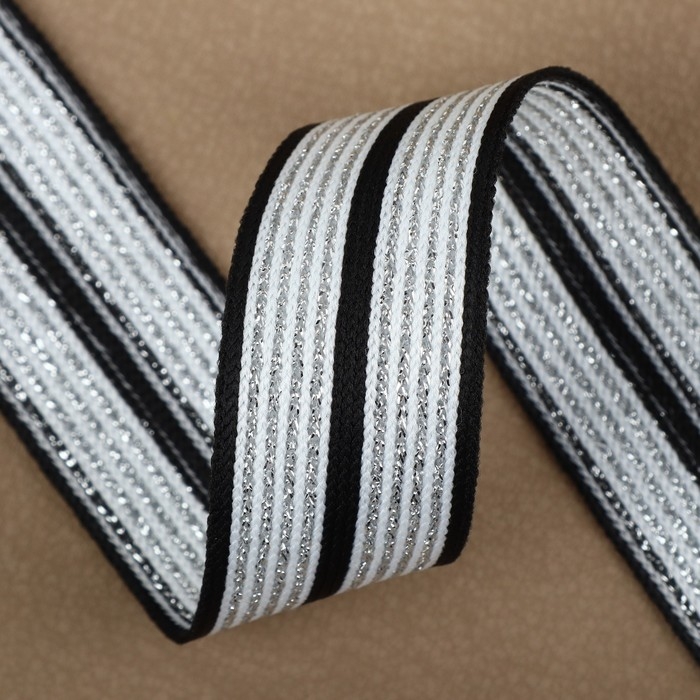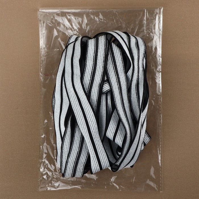 Тесьма трикотажная лампас 25 мм, 9,1 ± 0,5 м, цвет чёрный/белый