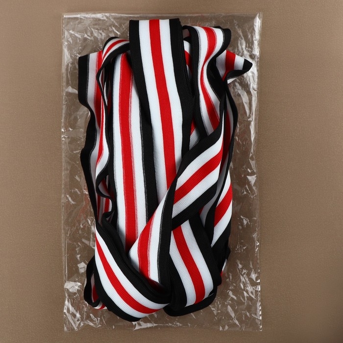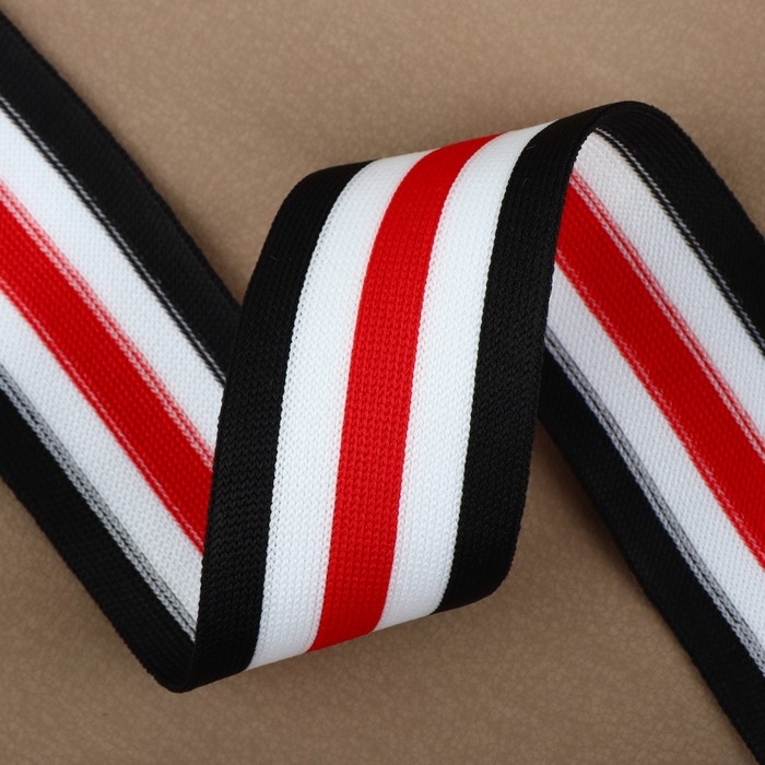 Тесьма трикотажная лампас 40 мм, 9,1 ± 0,5 м, цвет чёрный/белый/красный