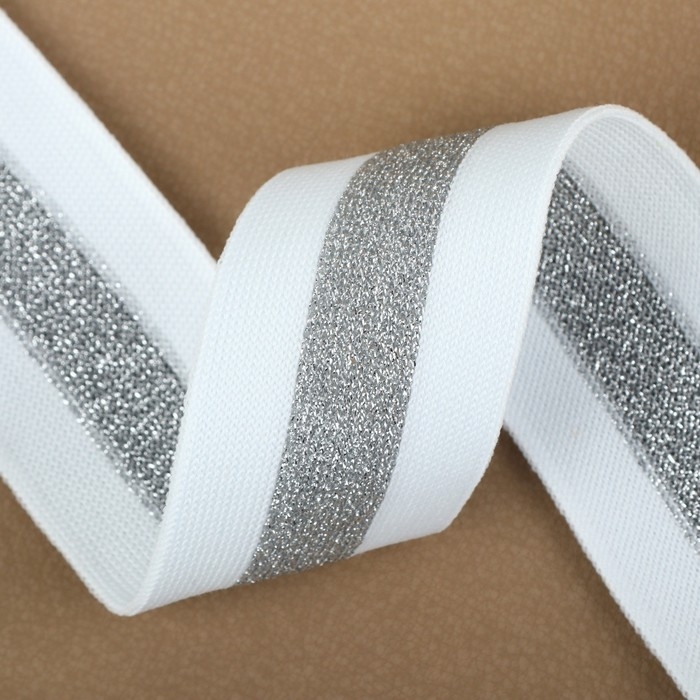 Тесьма трикотажная лампас 40 мм, 9,1 ± 0,5 м, цвет белый/серебряный