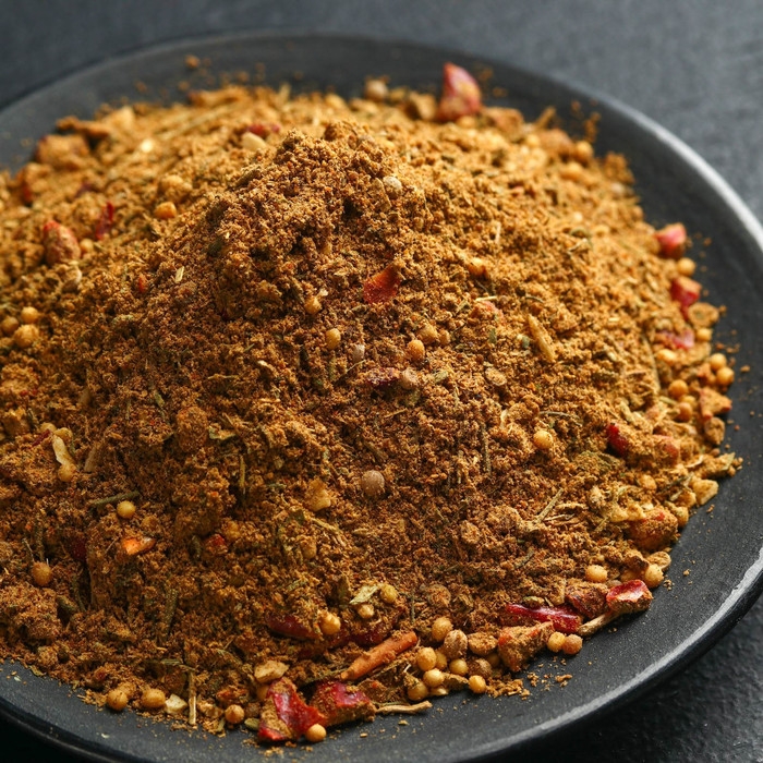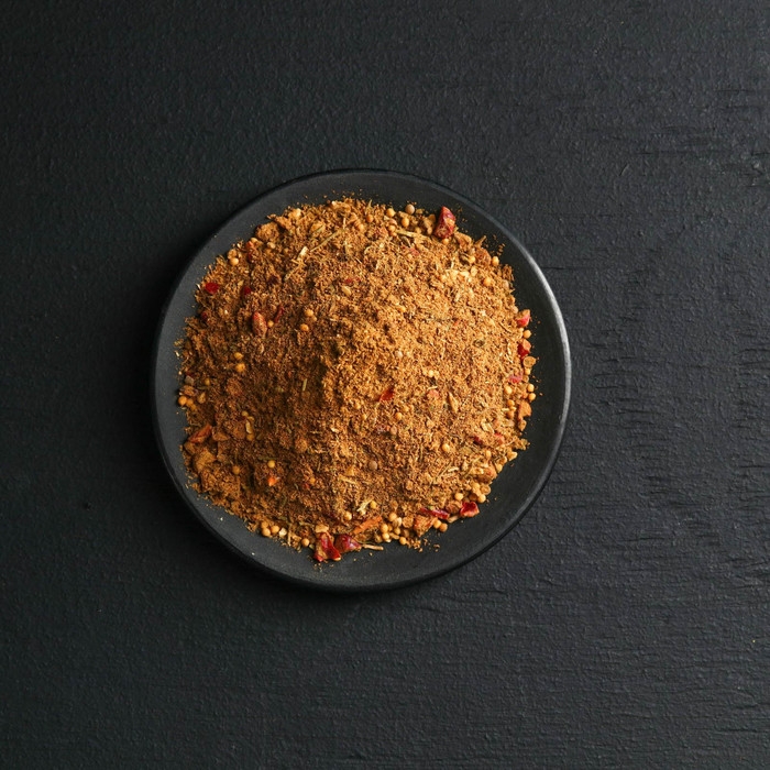 Состав: перец чёрный молотый, кориандр молотый, укроп сушёный, петрушка сушёная, лавровый лист молотый, паприка красная молотая, соль экстра, имбирь молотый, сахар белый, горчичное семя жёлтое, чеснок сушёный (гранулы), перец красный молотый острый.