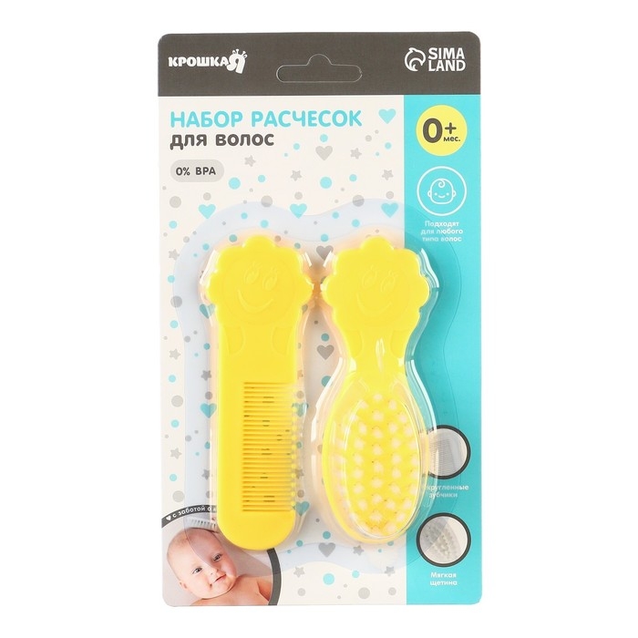 Расческа-щетка с мягкой щетиной и удобная расческа с закругленными зубчиками предназначены для малышей с первых дней жизни.