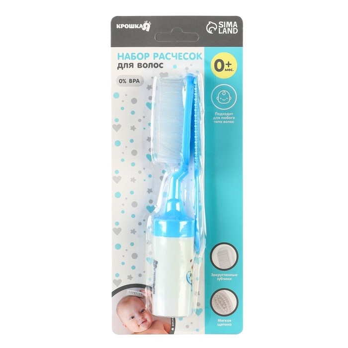 Мягкая пушистая щетка имеет удобную эргономичную ручку, улучшает кровообращение кожи головы, не царапая её. Нежный массаж расслабляет и успокаивает перед сном, а стимуляция волосяных луковиц ускоряет рост первых волос малыша. Щетка с мягким ворсом позволит пригладить волосики и придать им аккуратный вид. А с помощью расчески с частыми закругленными зубчиками удобно расчесывать запутавшиеся и скатавшиеся волосы.