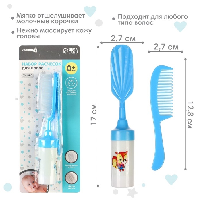 Расческа-щетка с мягкой щетиной и удобная расческа с закругленными зубчиками предназначены для малышей с первых дней жизни.