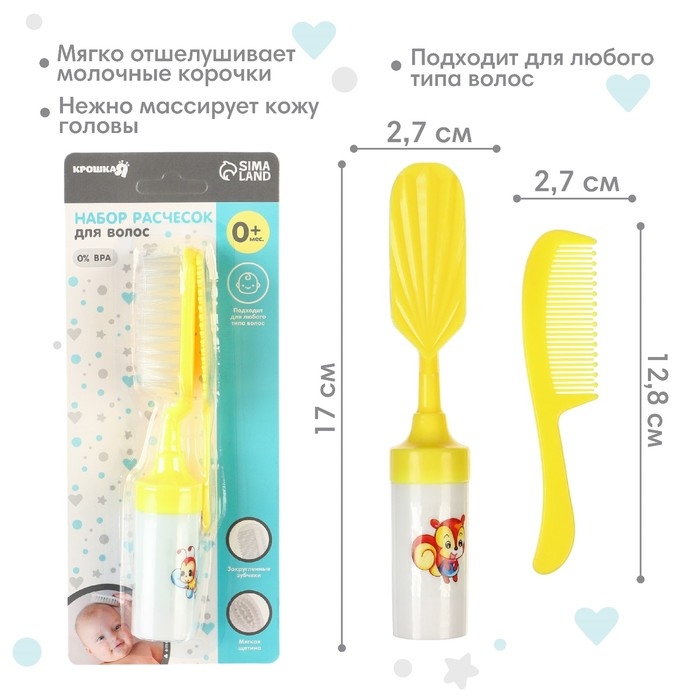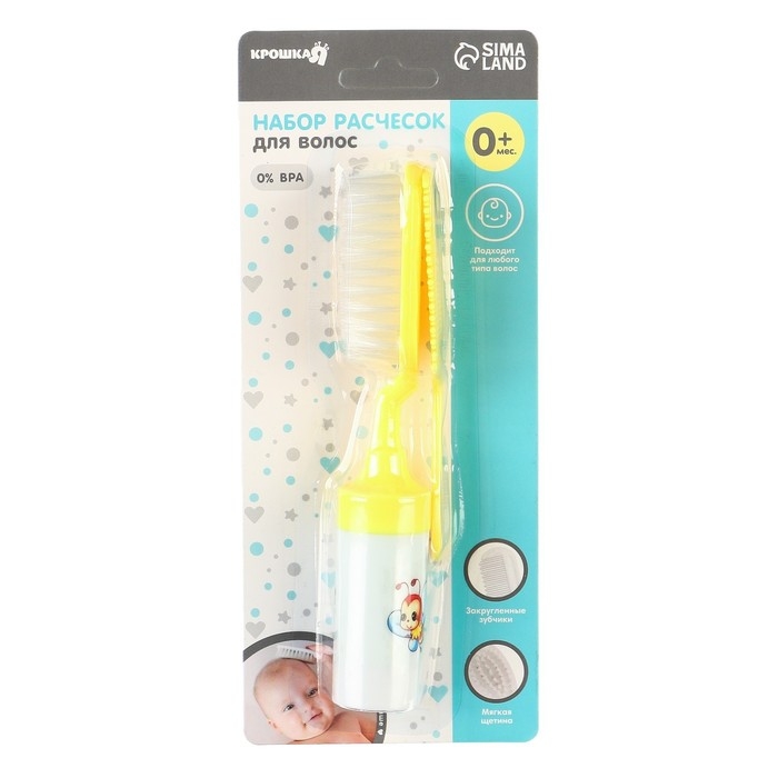 Расческа-щетка с мягкой щетиной и удобная расческа с закругленными зубчиками предназначены для малышей с первых дней жизни.