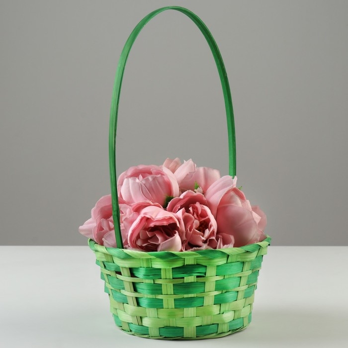 Корзина плетеная, 20,5 × 9,5 × 33 см, зелёная, бамбук