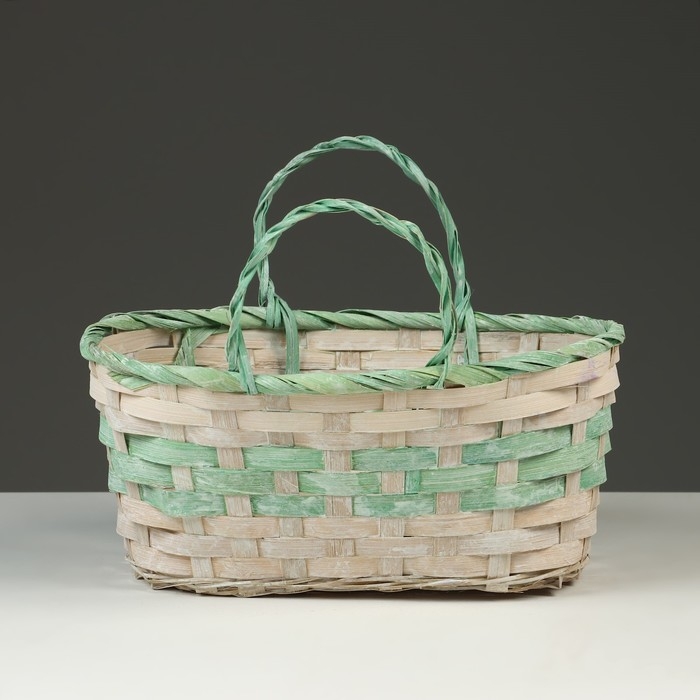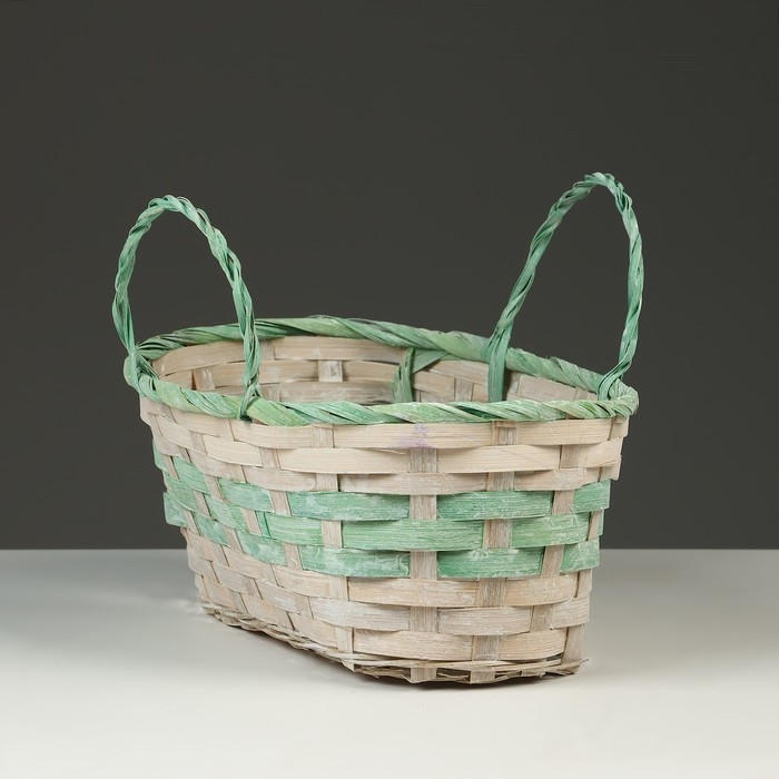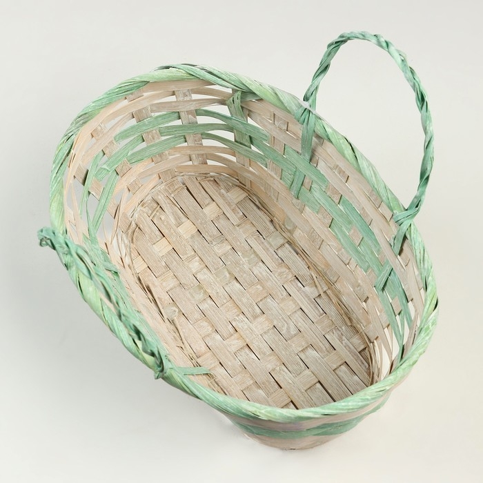 Корзина плетеная, D25 х 18 х 11/19 см, зелёная, бамбук