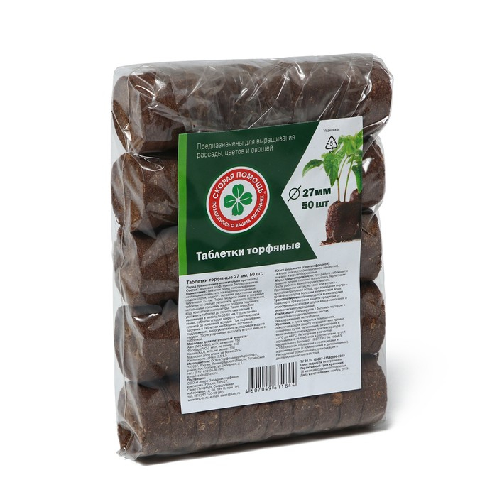 Таблетки торфяные, d = 2.7 см, в оболочке, набор 50 шт.