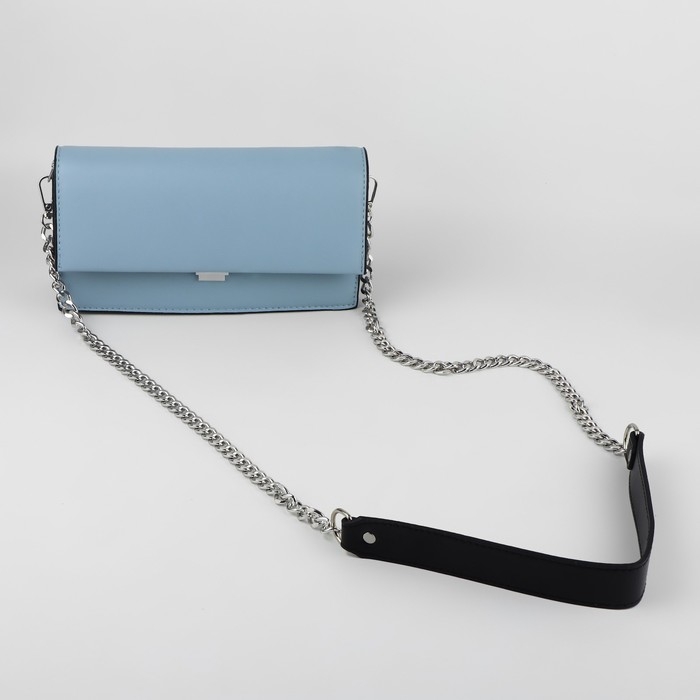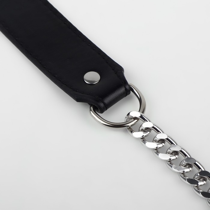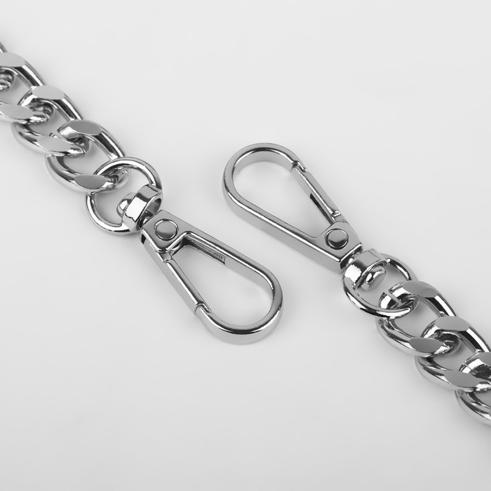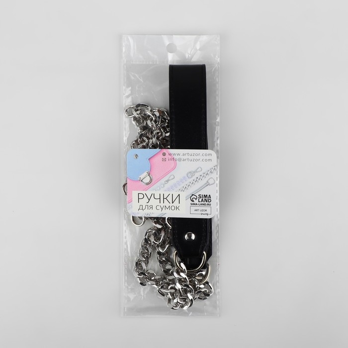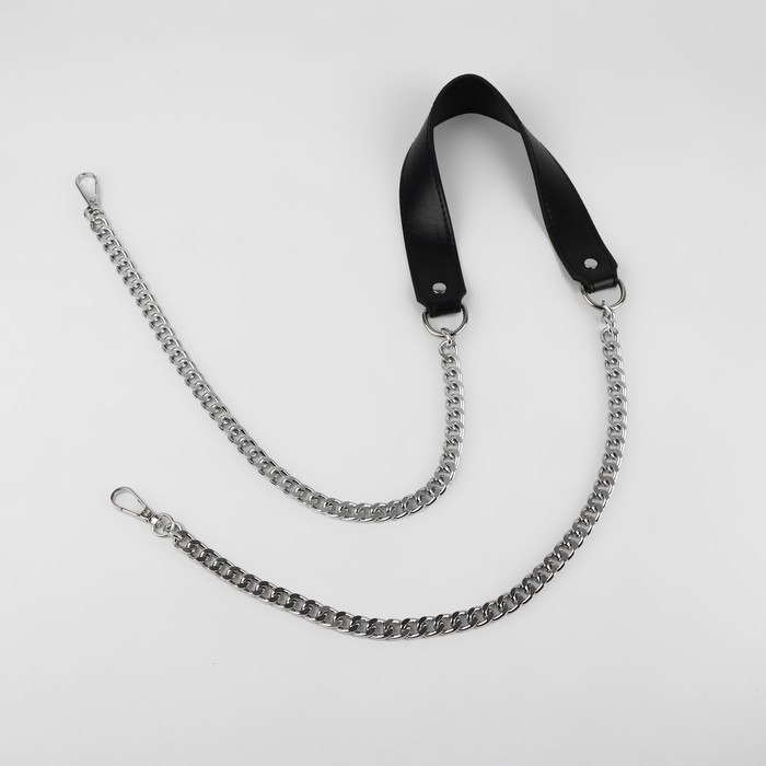 Ручка для сумки, с плоскими цепочками и карабинами, 120 × 3 см, цвет чёрный/серебряный