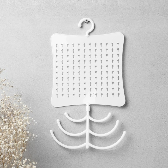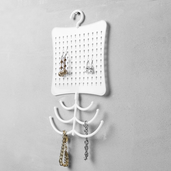 Органайзер для украшений с крючком, 60 пар, 6 крючков, пластик, 20×0,5×35 см, цвет белый