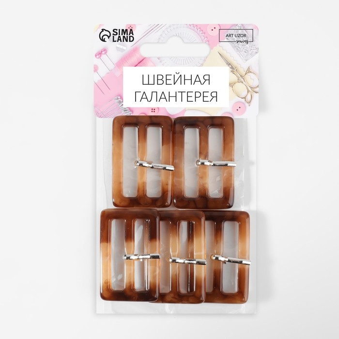 Пряжка для ремня, 4,5 × 3 см, 5 шт, цвет тёмно-коричневый/бежевый