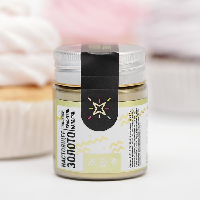 Кандурин MIXIE «Настоящее золото» является биологически активным соединением из силиката или слюды – продуктов растительного происхождения, а также устойчив к воздействию температур, поэтому он не потеряет свой цвет и текстуру. Кандурин — плотный перламутровый краситель, который можно использовать для декора и поверхностного нанесения на все виды кондитерских изделий.