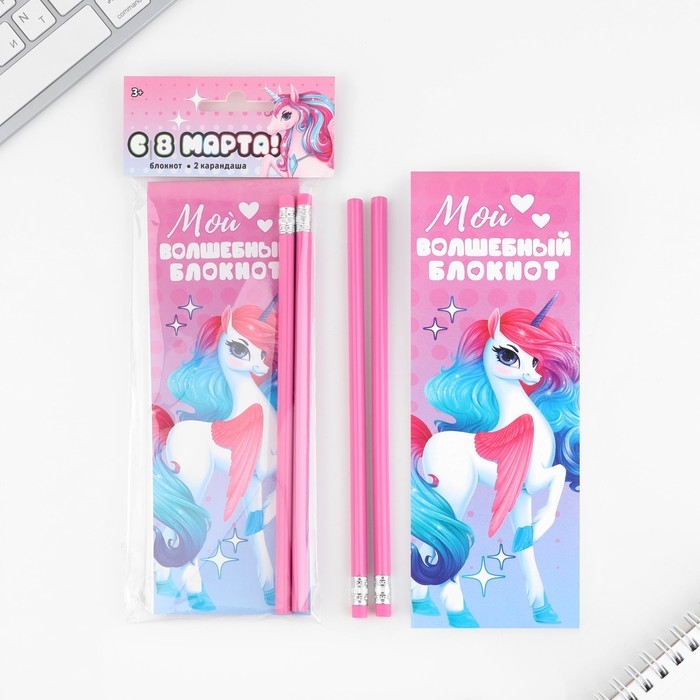 Подарочный набор 2 карандаша и блокнот «Единорог»