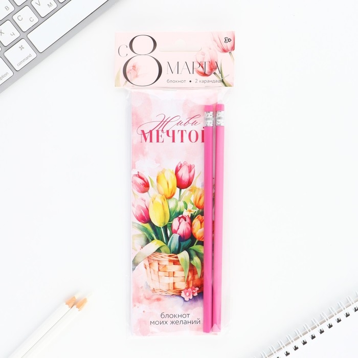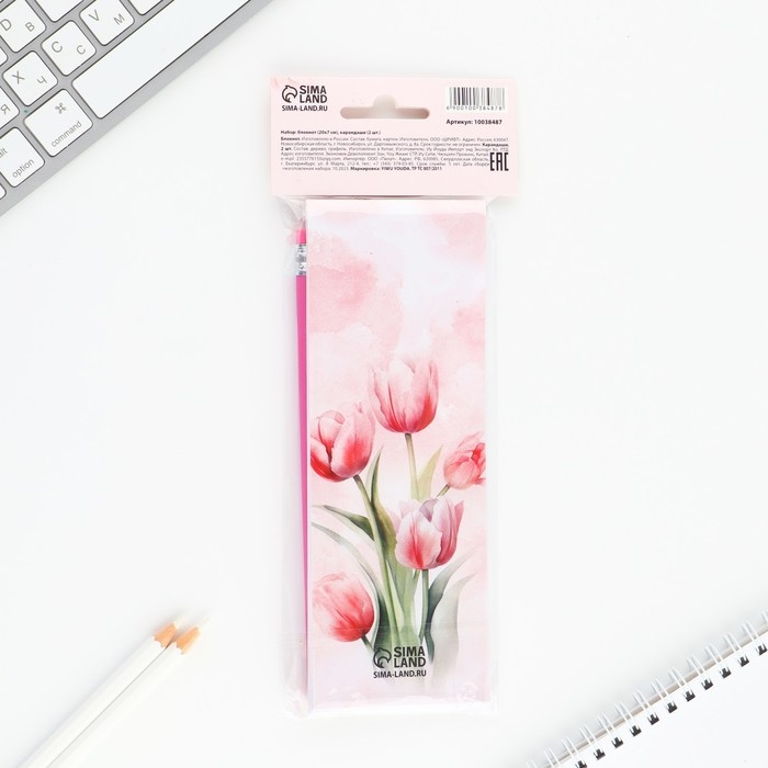 Подарочный набор 2 карандаша и блокнот «Тюльпаны»