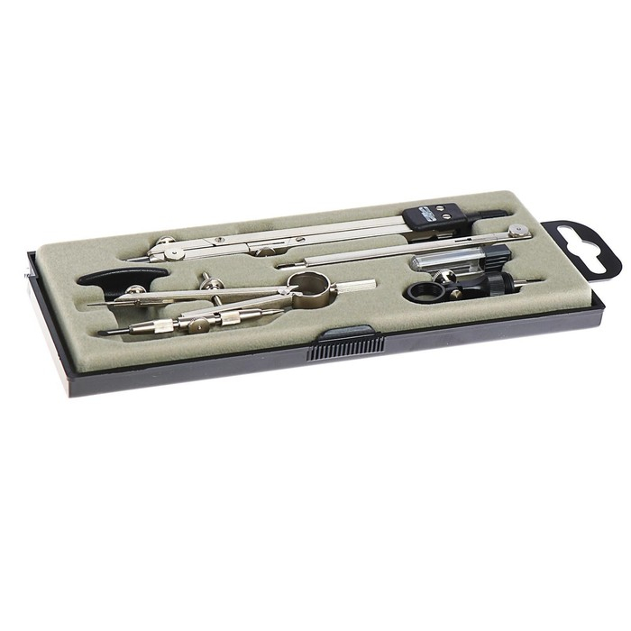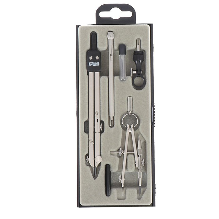 Готовальня, 6 предметов (циркуль, точилка, грифель, ластик, карандаш механический 0,5 мм, грифель НВ 0,5 мм) в пластиковом пенале