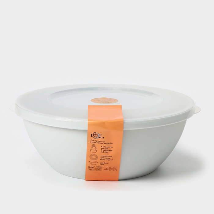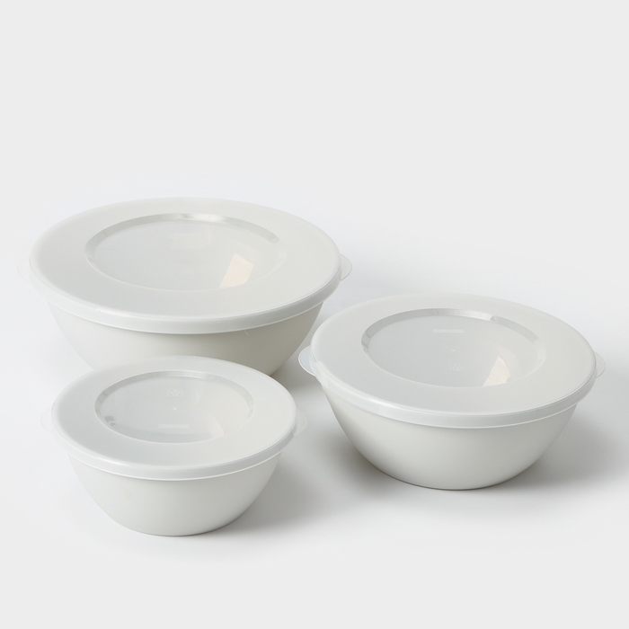 Набор мисок с крышкой HELSINKI, 3 шт: 1 л, 2 л, 3 л, цвет пепельный жемчуг