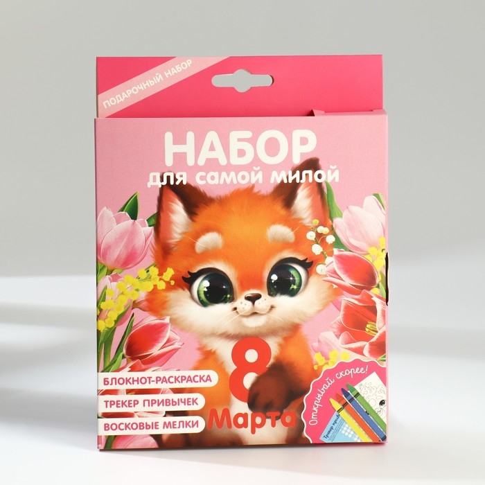 Подарочный набор блокнот-раскраска А6, трекер привычек и восковые мелки «Для самой милой»