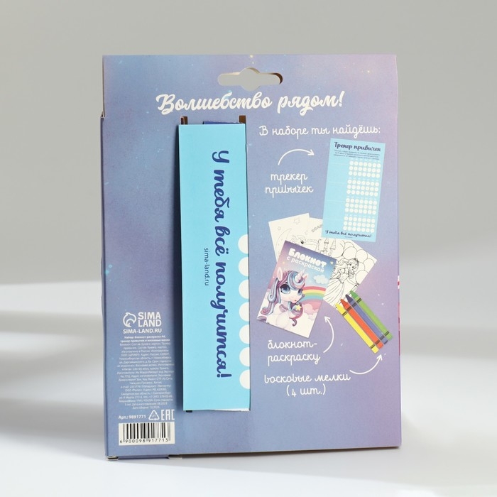 Подарочный набор блокнот-раскраска А6, трекер привычек и восковые мелки «Самой волшебной»
