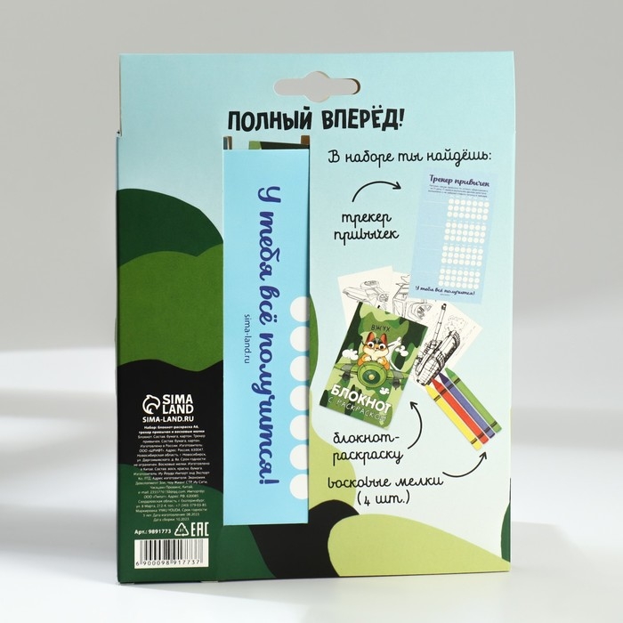 Подарочный набор блокнот-раскраска А6, трекер привычек и восковые мелки «Пушистому защитнику»