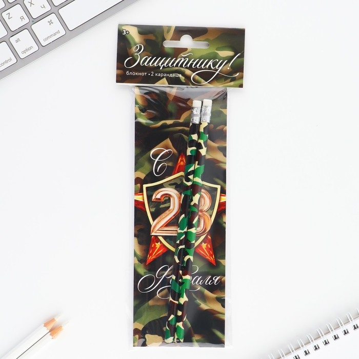 Подарочный набор 2 карандаша и блокнот «Защитнику»