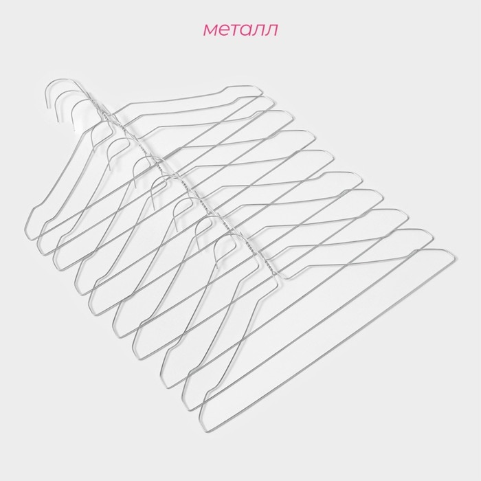 Плечики - вешалки для одежды Доляна, 40×22×0,2 см, 10 шт, металлические, тонкие, цвет серебряный