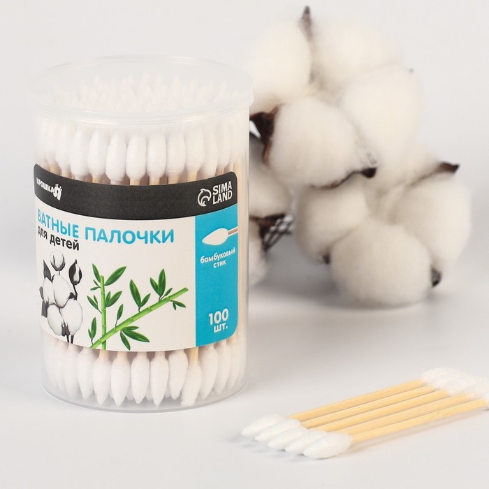 Ватные палочки для детей Крошка Я, коробка 200 шт., наконечник - классика, хлопок/бамбук