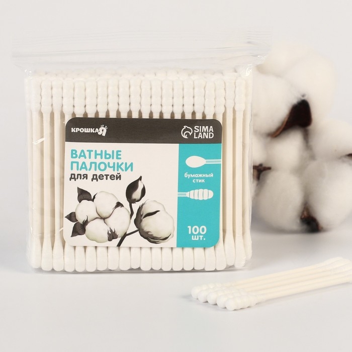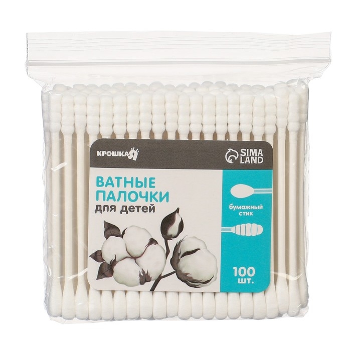 Ватные палочки для детей Крошка Я, коробка 200 шт., наконечник - классика, хлопок/бамбук