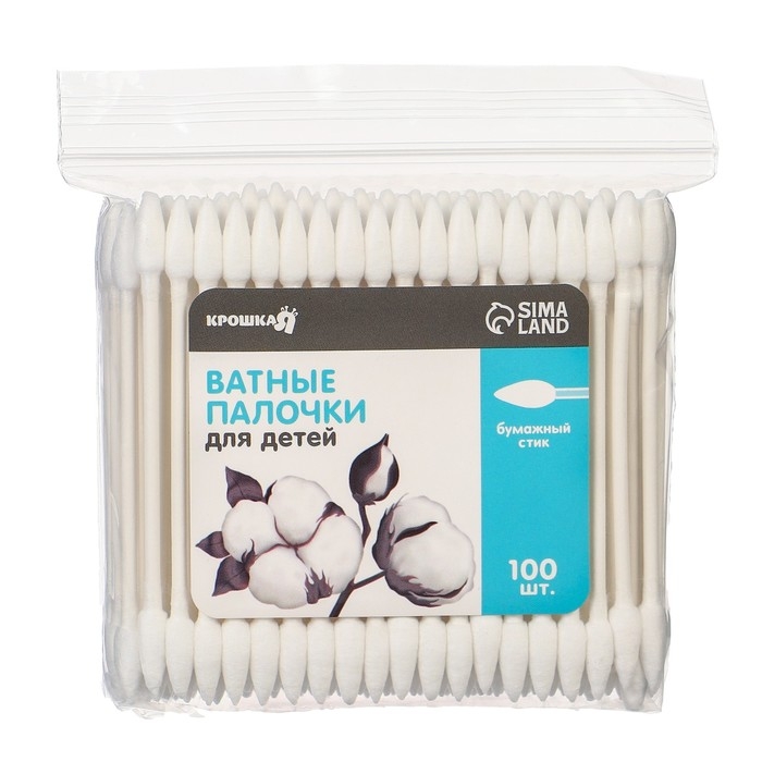 Ватные палочки, пакет 100 шт., наконечник - острый, хлопок/бумага(стик)
