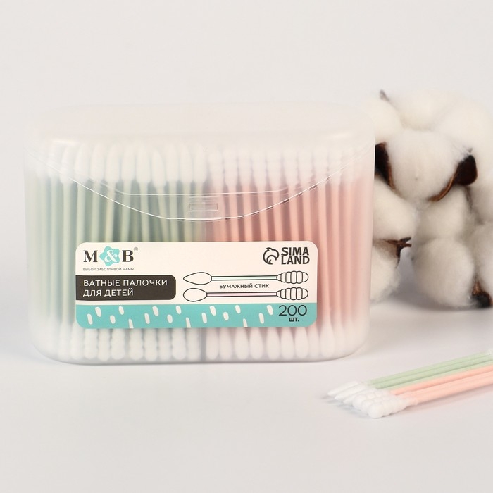 Ватные палочки для детей Крошка Я, коробка 200 шт., наконечник - классика, хлопок/бамбук