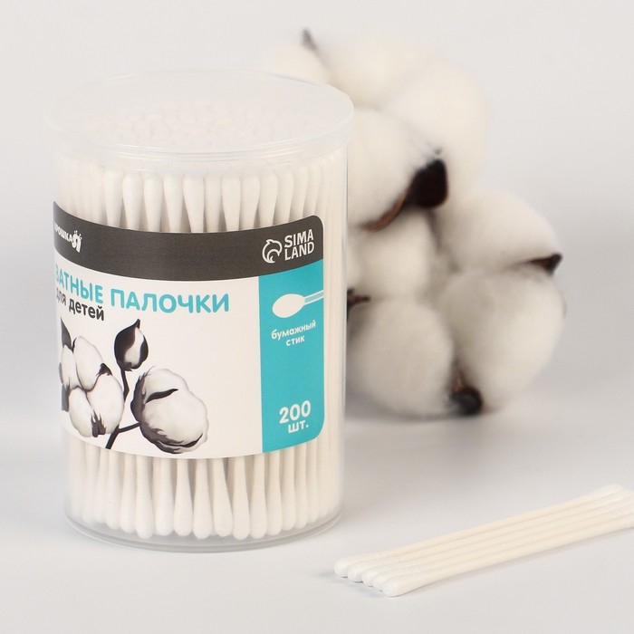 Ватные палочки для детей Крошка Я, коробка 200 шт., наконечник - классика, хлопок/бамбук
