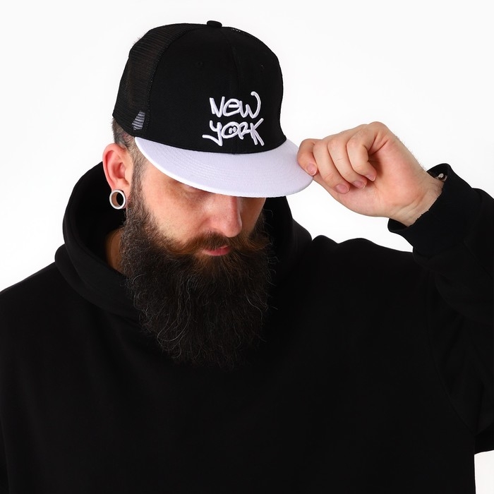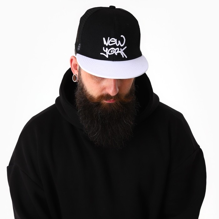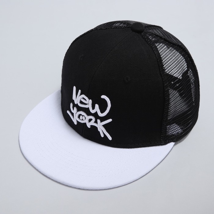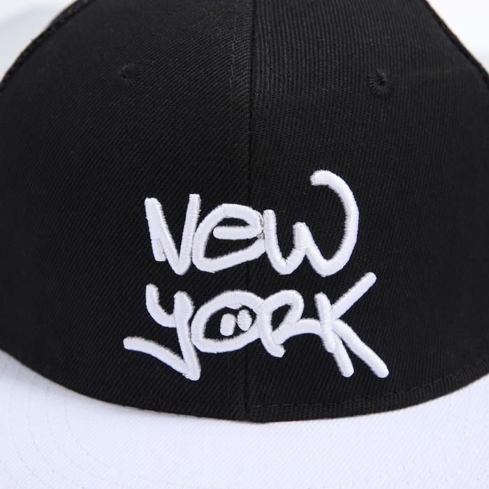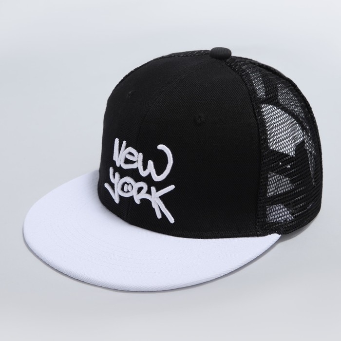 Кепка мужская с прямым козырьком New York, цвет чёрный, сетка, р-р 56