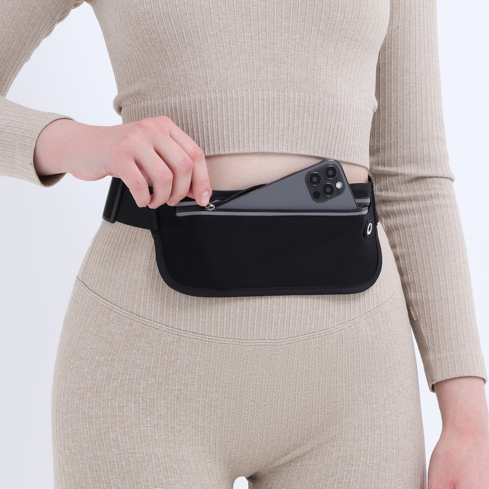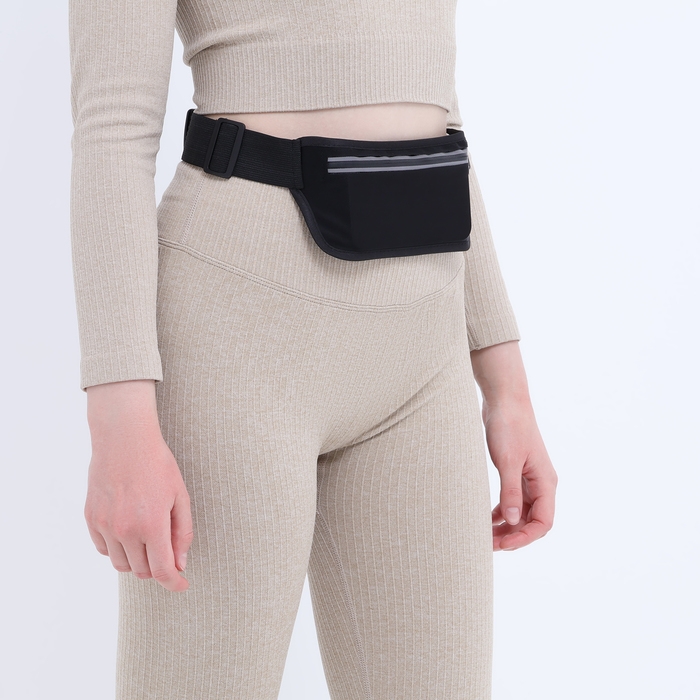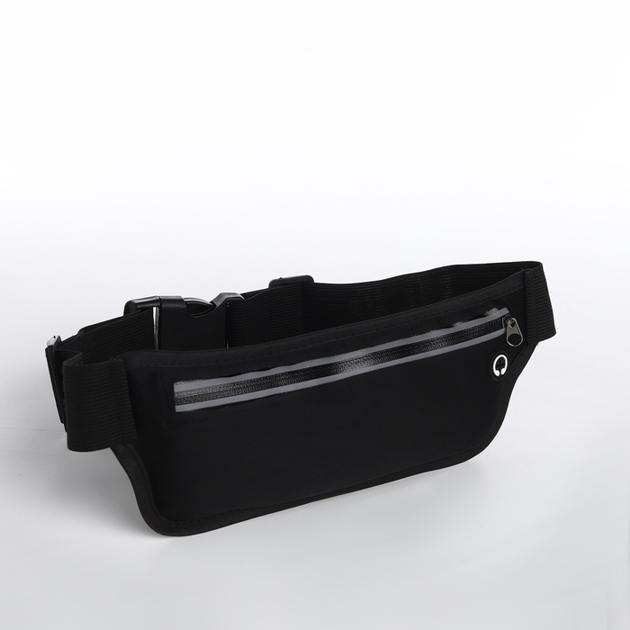 Сумка поясная на молнии, светоотражающие элементы, цвет чёрный