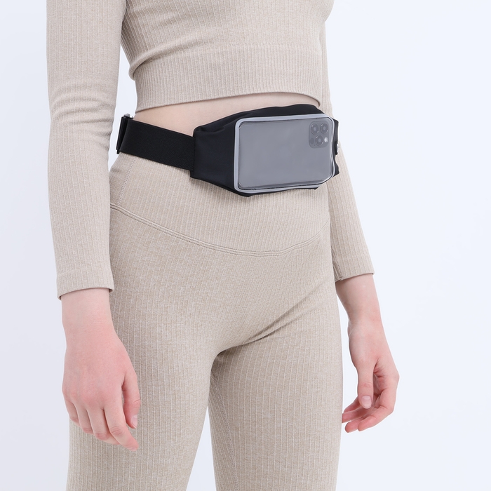 Сумка поясная на молнии, светоотражающие элементы, цвет чёрный