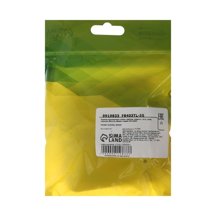 Розетка одноместная Luazon Lighting "Орион", 10 А, скрытая, без з/к, белая