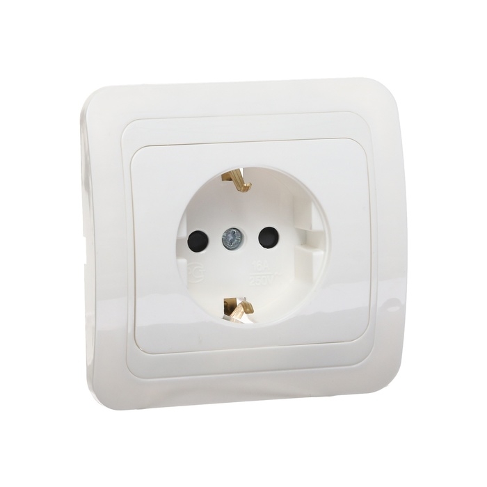 Розетка одноместная со шторкой Luazon Lighting "Орион", 16 А, скрытая, с з/к, белая