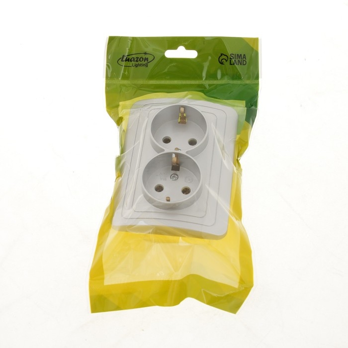 Розетка двухместная Luazon Lighting "Орион", 16 А, скрытая, с з/к, серебристая
