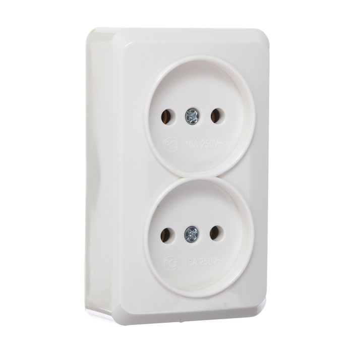 Розетка двухместная Luazon Lighting "Лига", 10 А, накладная, без з/к, белая