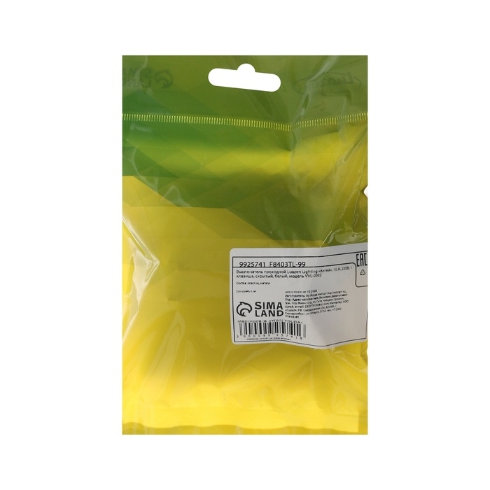 Выключатель проходной Luazon Lighting "Антей", 10 А, 1 клавиша, скрытый, белый