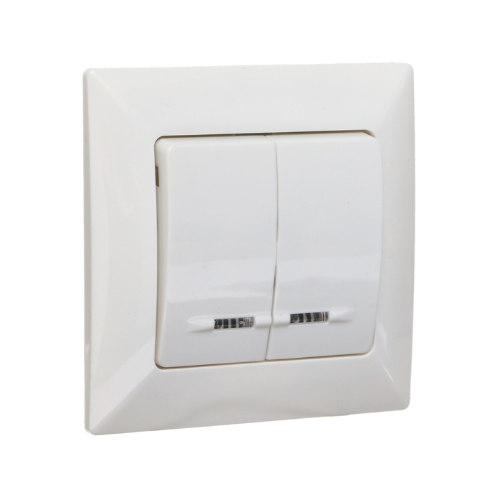Выключатель Luazon Lighting "Антей", 10 А, 2 клавиши, скрытый, с подсветкой, белый