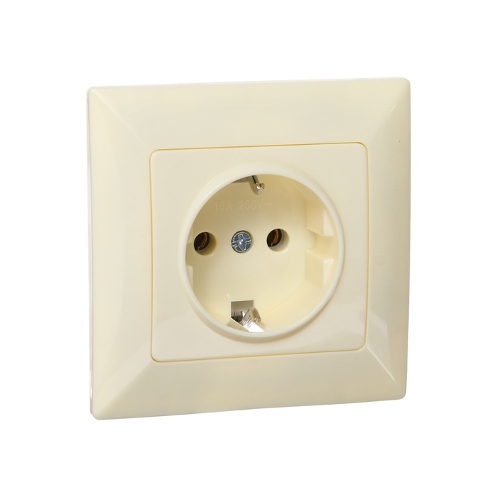 Розетка одноместная Luazon Lighting "Антей", 16 А, скрытая, с з/к, бежевая
