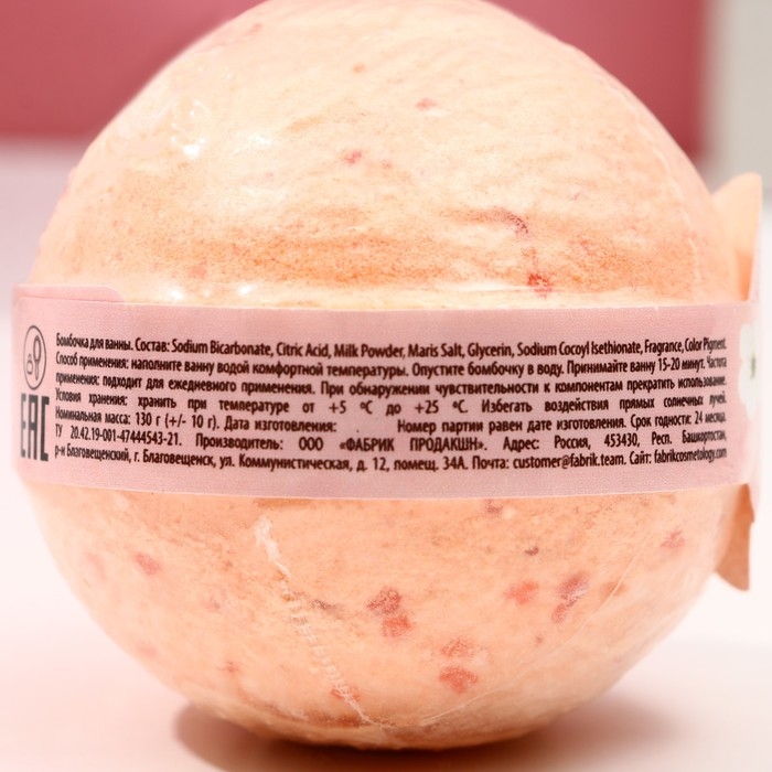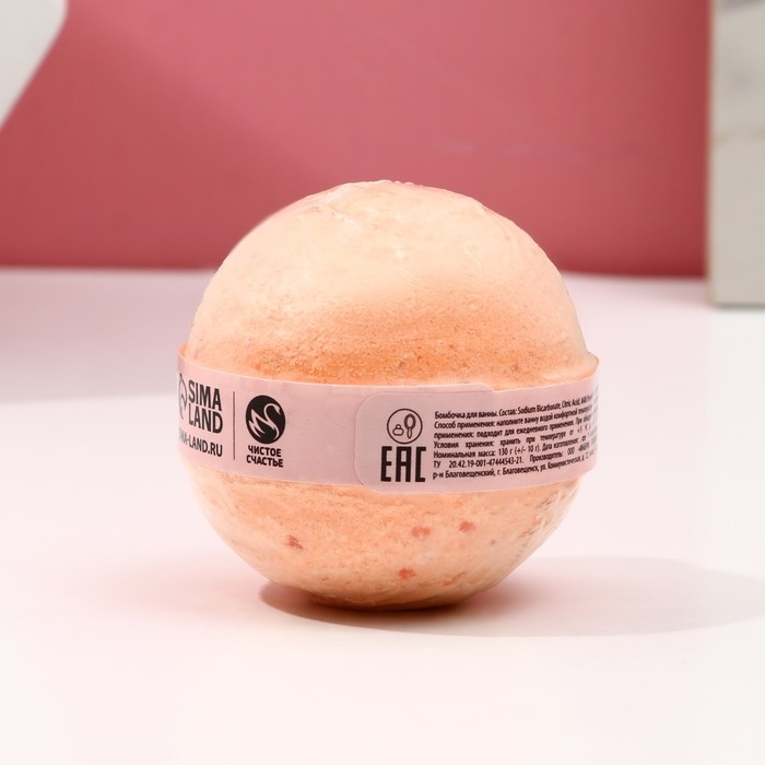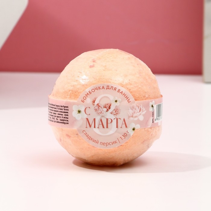 Бомбочка для ванны «С 8 Марта!», 130 г, аромат сладкого персика, ЧИСТОЕ СЧАСТЬЕ